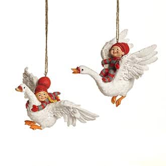 Babynisserne flyver over nissebyen på deres julegæs.