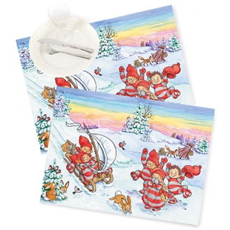 Babynissernes dække serviet til det perfekte julepyntet julebord. Når alle babynisserne er på bordet, er det så hyggeligt at kunne servere tallerkenerne på disse dække servietter. Disse er i vævet stof. Str. 33 x 48 cm.