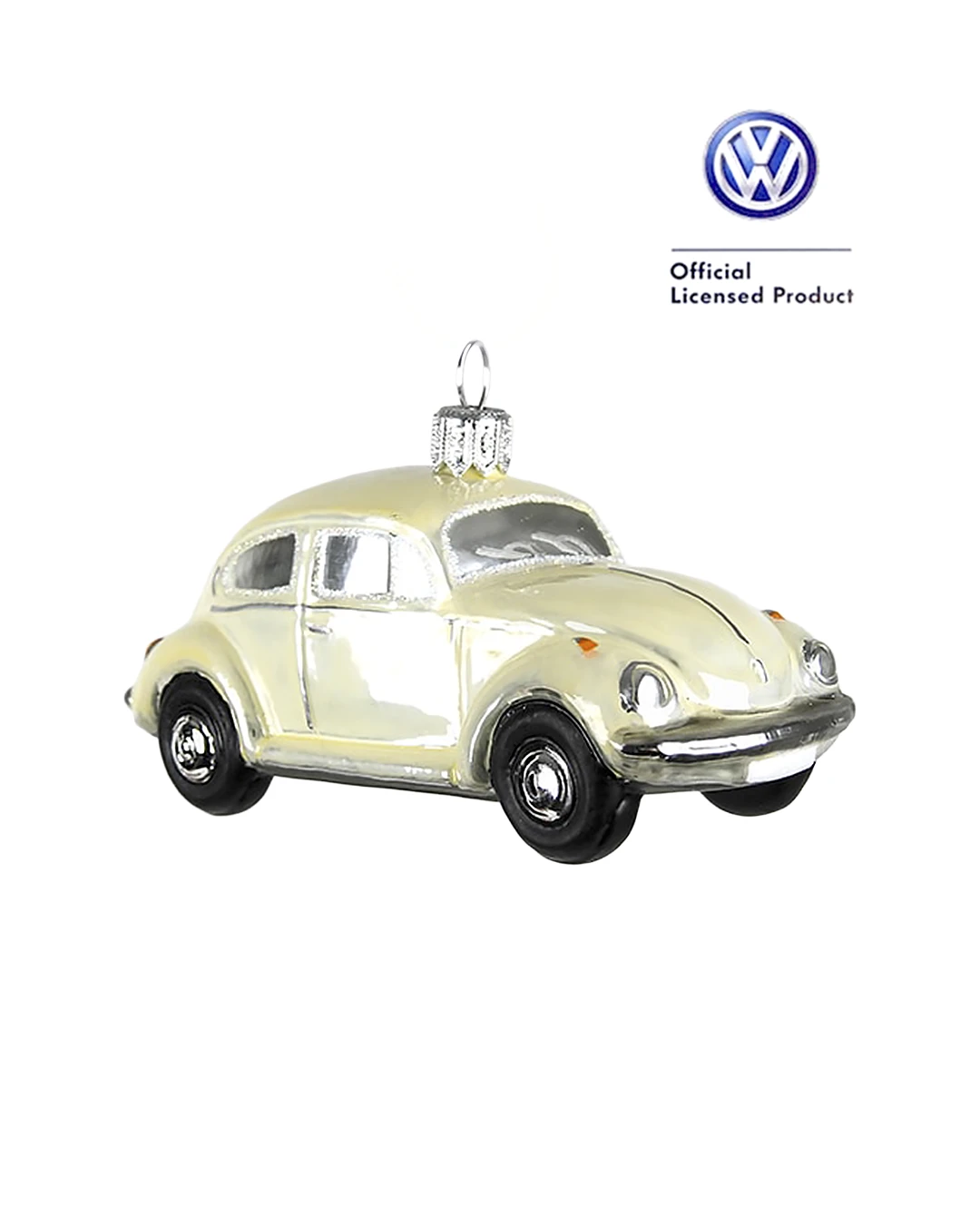 Beige VW folkevogn licens juletræs kugle, er i mundblæst glas. Smukt frihånds arbejde. Flot beige folkevogn fra VW. Kopi af den rigtige originale udgave. Kuglen leveres med VW godkendt licens. Sorte dæk, klare ruder, rødt bliklys for, røde bag lygter, forsølvet kofanger, for og bag. Beige, hvid glimmer. Bredde 10 cm Højde 7 cm Dybde 4 cm 1 stk. kugler. Fra en af vores helt specielle udsøgte leverandør på dette marked, som håndhæver dette gamle erhverv. Leverandøren er en af de ældste på området, og har derfor mange af de gamle forme og mønstre. Når det er mundblæste kugler og spir, kan de enten være lavet i frihånd, eller hvor de har brugt en form. Mundblæste kugler vil der altid være en lille forskel, da dette er håndarbejde, helt ned i mindste detalje.