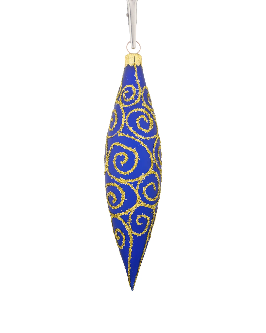 Blå frostet glas juletræskugle spids, er i mundblæst glas.