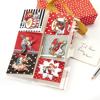Bramming drillenisser til og fra kort til alle julegaverne.