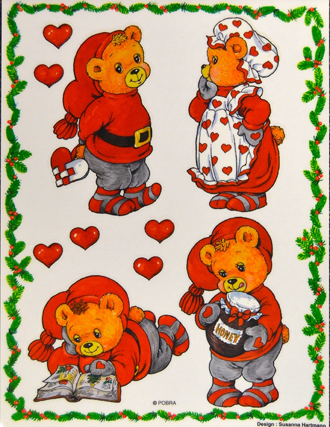 Susanna Hartmanns super skønne julebamser vindues deko stickers, bamsedreng med honningkrukke.