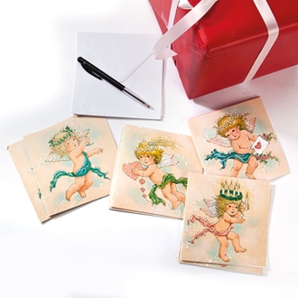 Søde dobbelte til og fra kort med engle og glimmer.