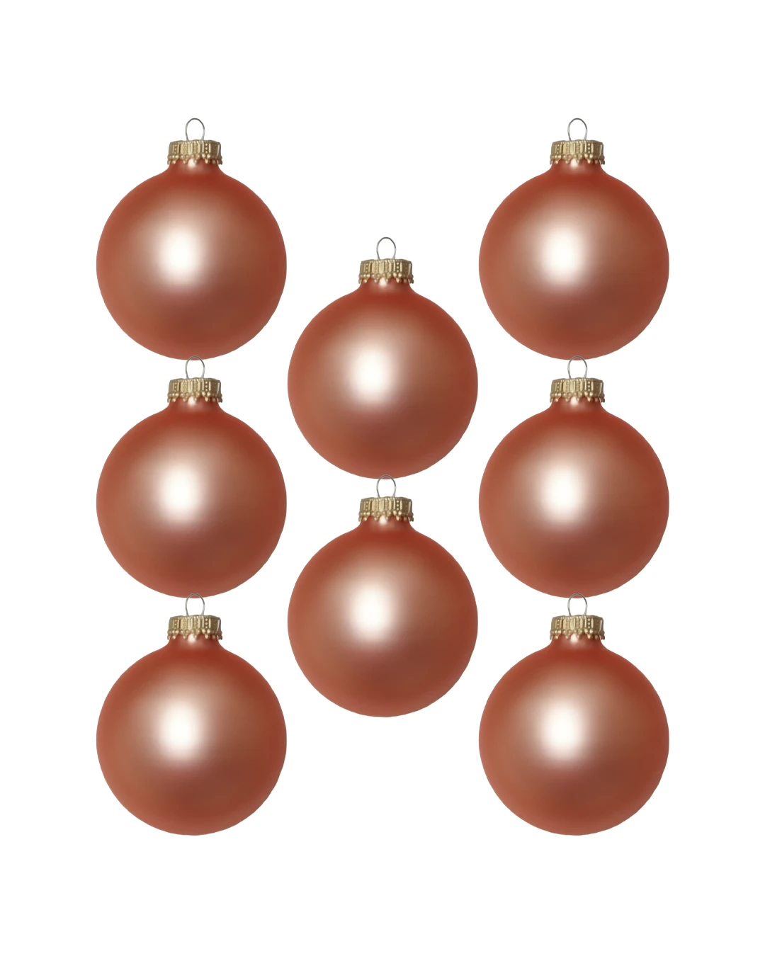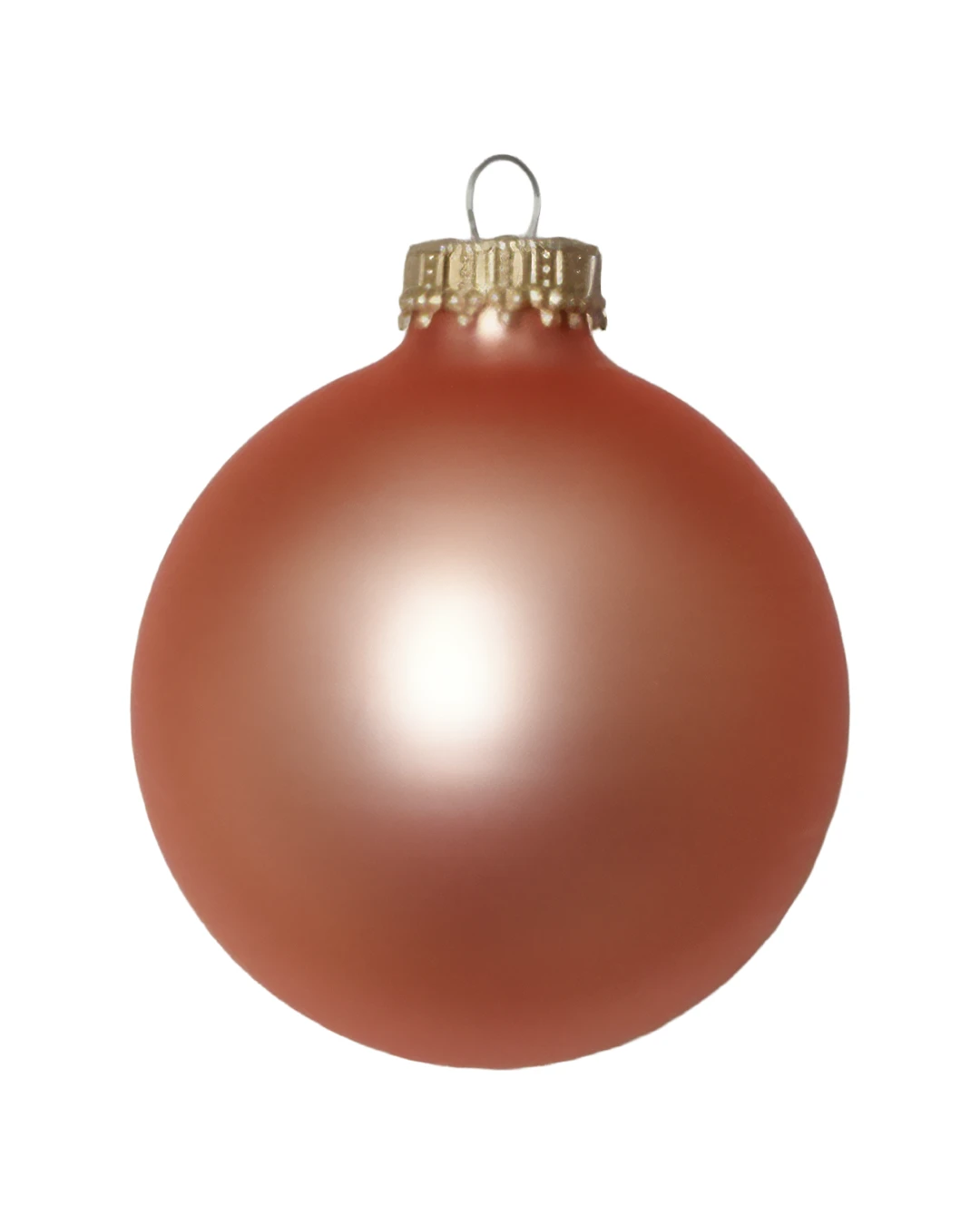 Smukke silkematte glas juletræskugler i fersken farve, der matcher hele serien med silkemat overflade.