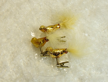 Fugle på clips i guld, er i mundblæst glas. Disse smukke fugle, i silkemat og blank, med clips. Juletræskugler, der er helt unikke. Dette er en eksklusiv kvalitet.