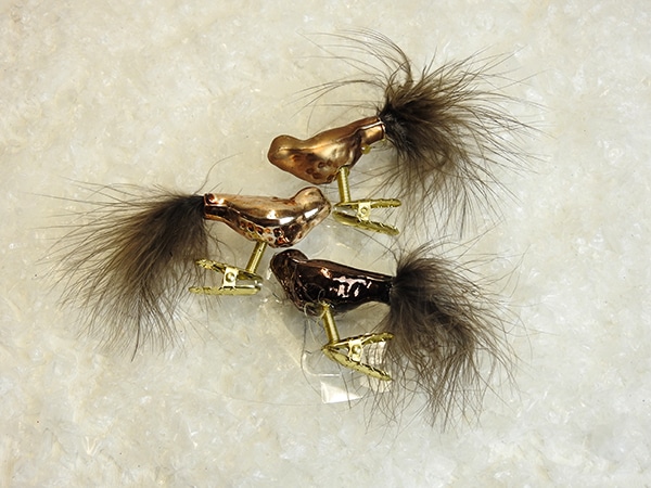 Fugle på clips i kobber, er i mundblæst glas. Disse smukke fugle, i silkemat og blank, med clips. Juletræskugler, der er helt unikke. Dette er en eksklusiv kvalitet.