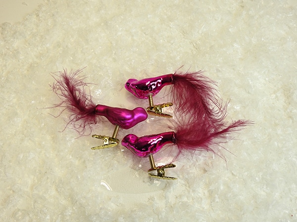 Fugle på clips i pink, er i mundblæst glas. Disse smukke fugle, i silkemat og blank, med clips. Juletræskugler, der er helt unikke. Dette er en eksklusiv kvalitet.