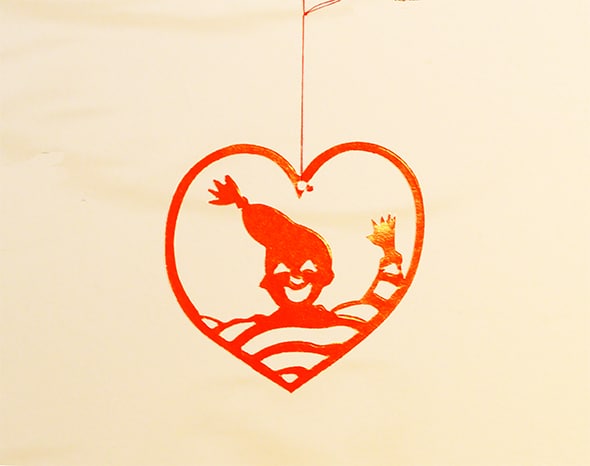 Gamle papirklip ophæng vinkende nisse i hjerte, er papirklip fra Pobra.