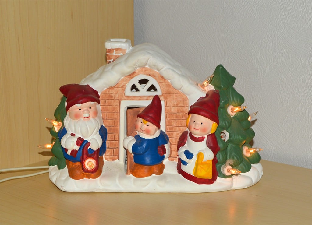 Gammel lys hus med nisser