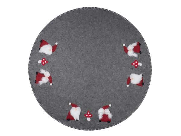 Grå julemands juletræstæppe Ø 90 cm, med sjove langskægget julemænd.