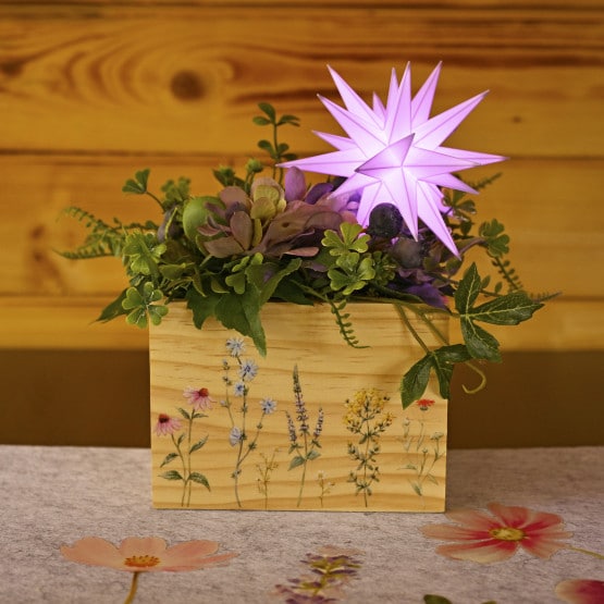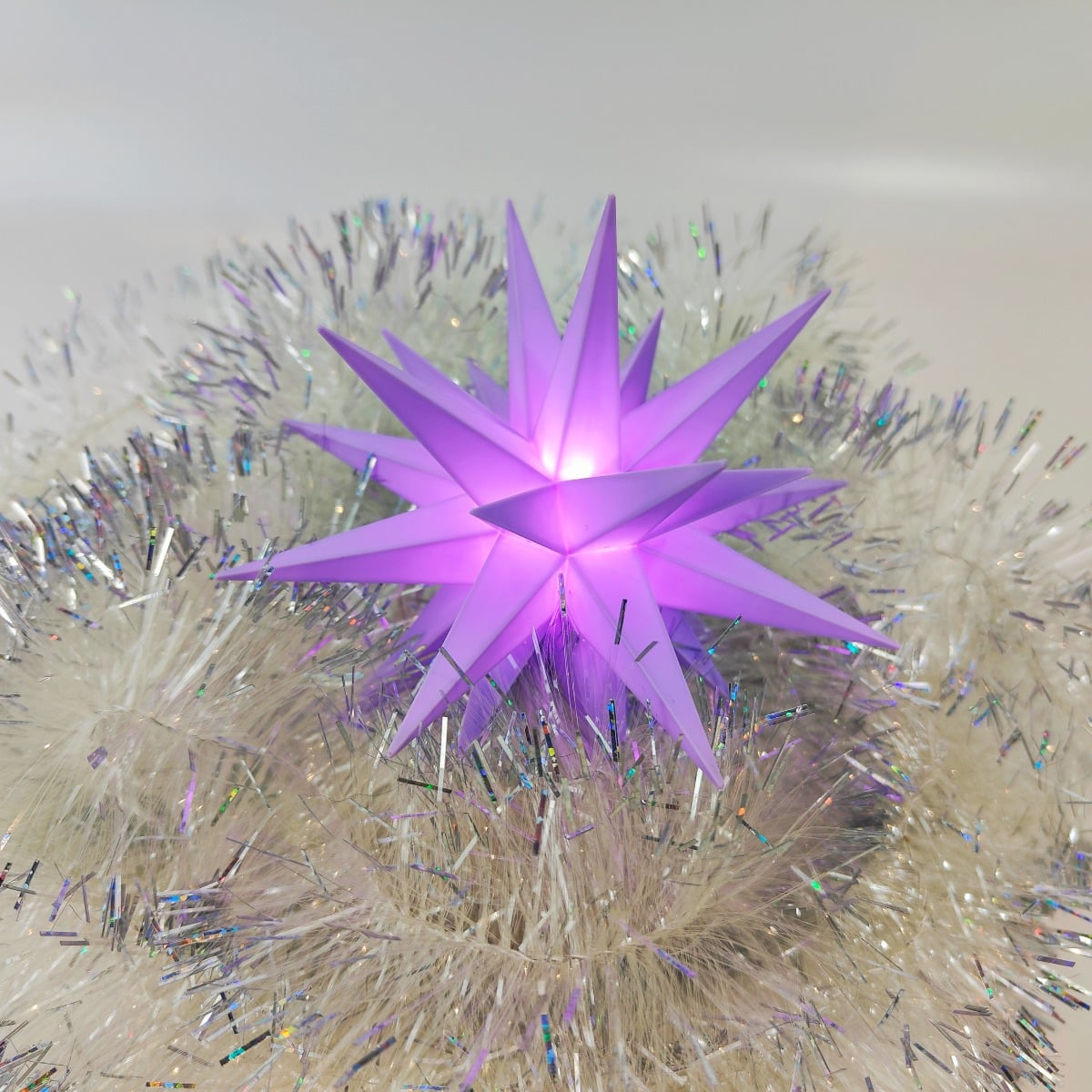 Skab hygge i små hjørner med denne flotte stjerne, i dekorationer sammen med lilla, eller hvide opal juletræskugler, eller brug dem til børneværelserne.