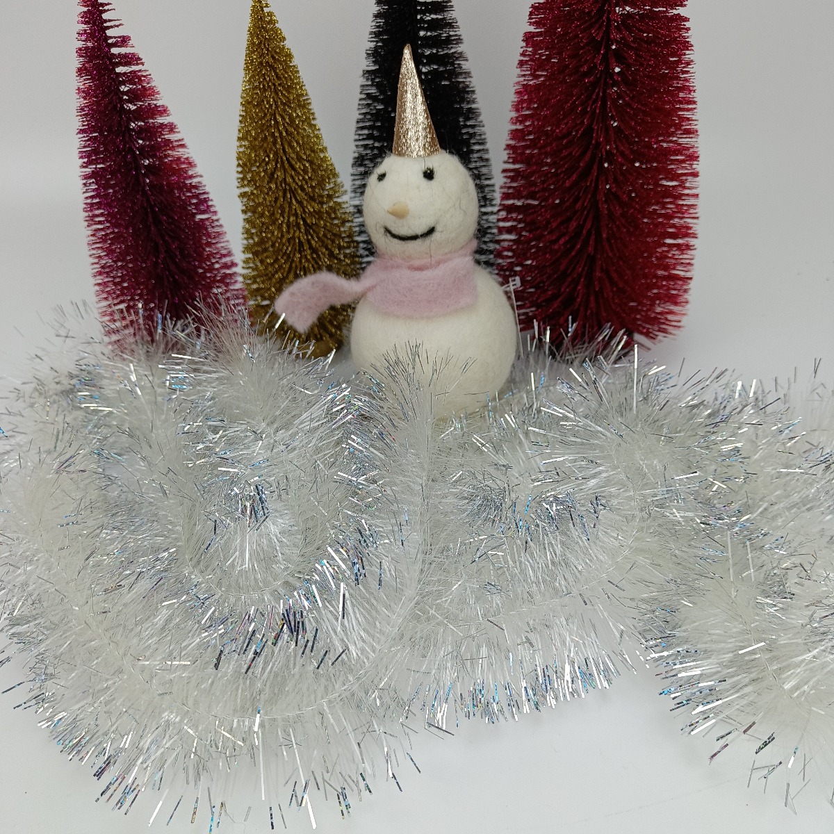Busket hvid guirlande 2.7 mtr. med flotte sølv spidser, er en bred og mere fyldig guirlande.