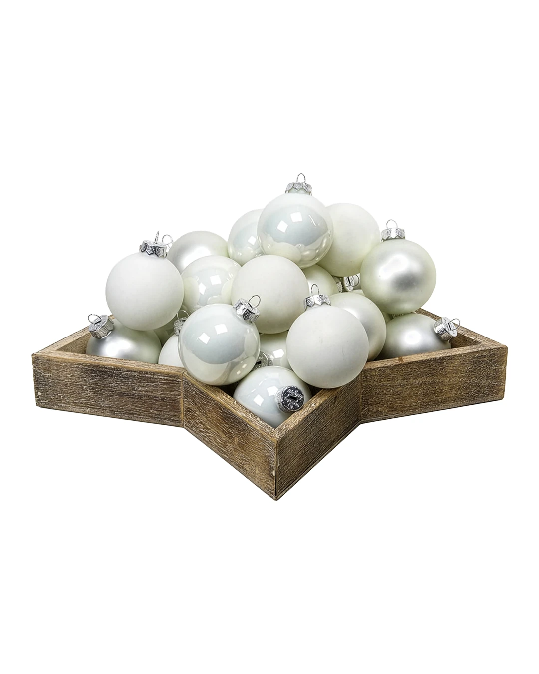 Hvide silkematte og opal juletræskugler mix Ø 6 cm