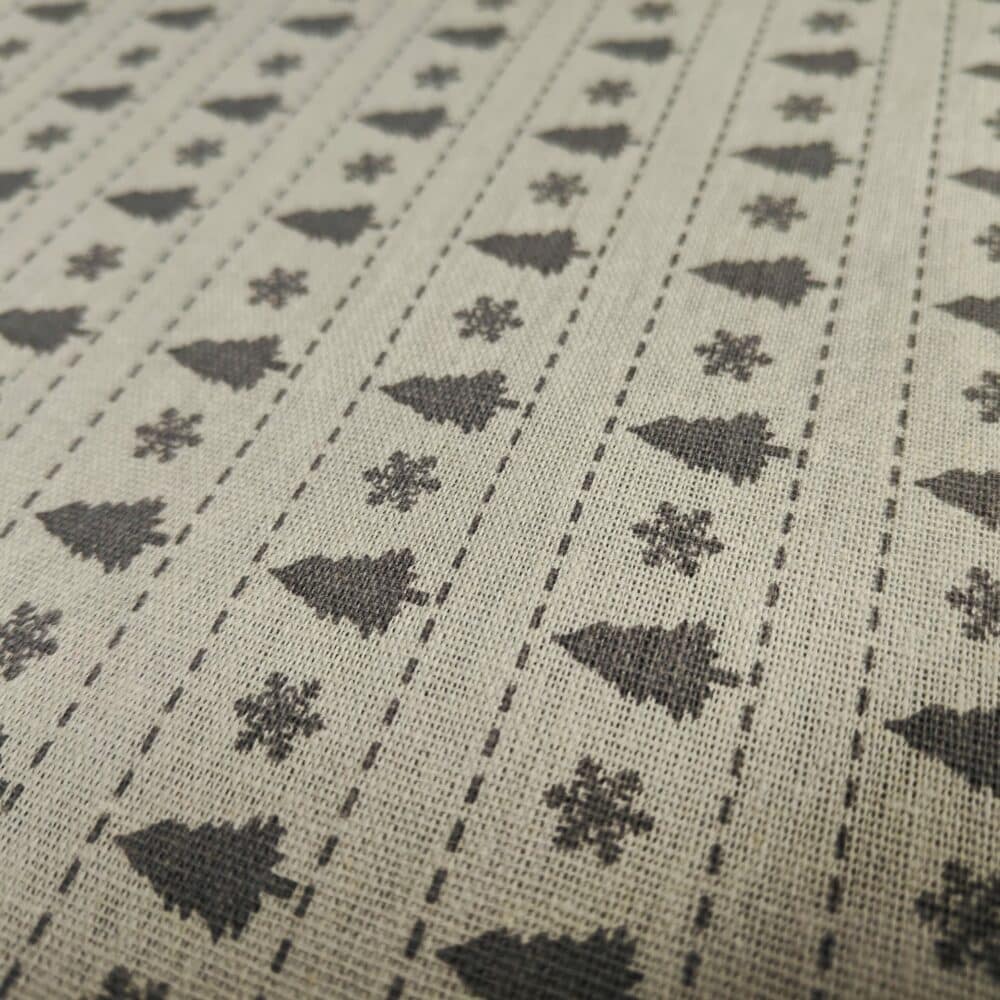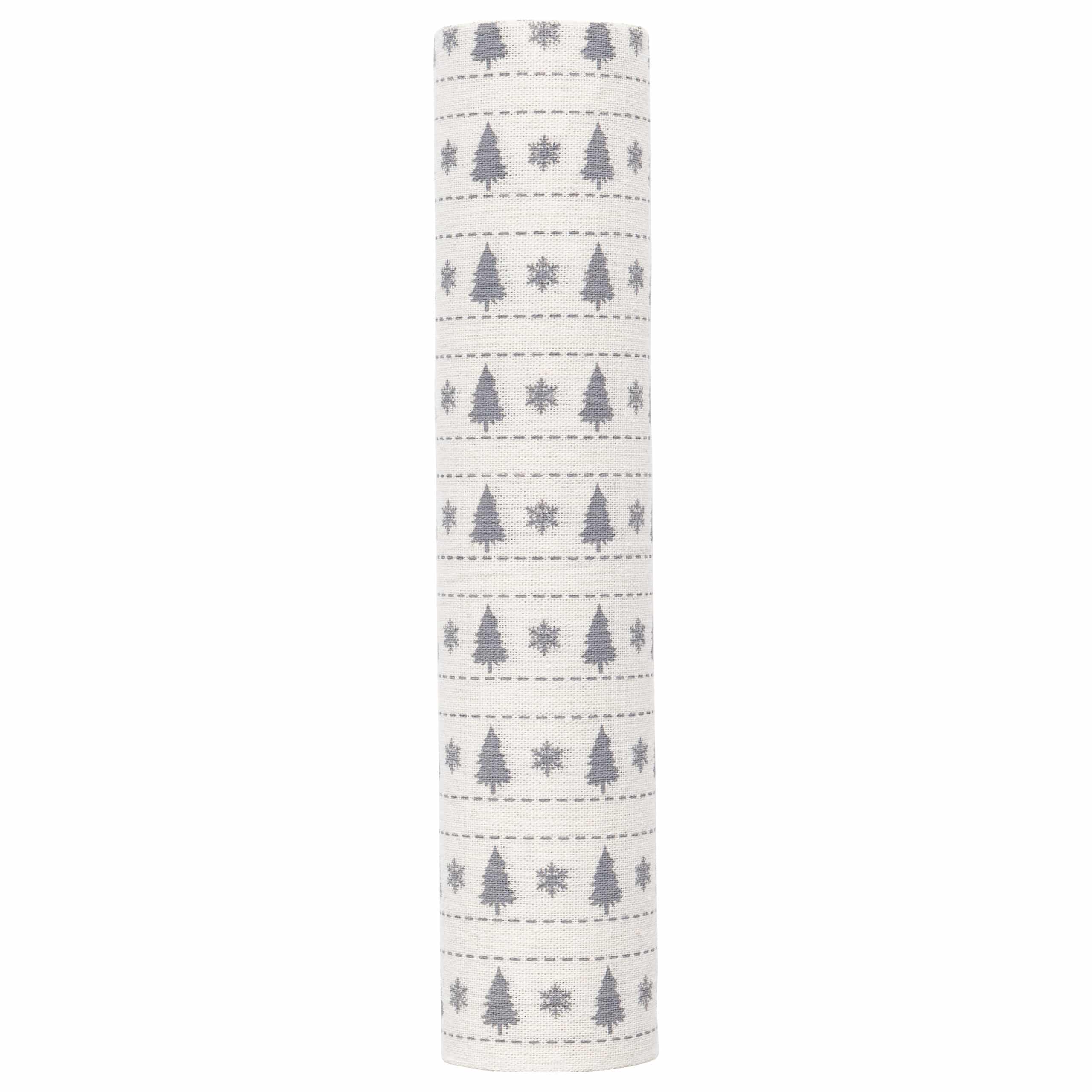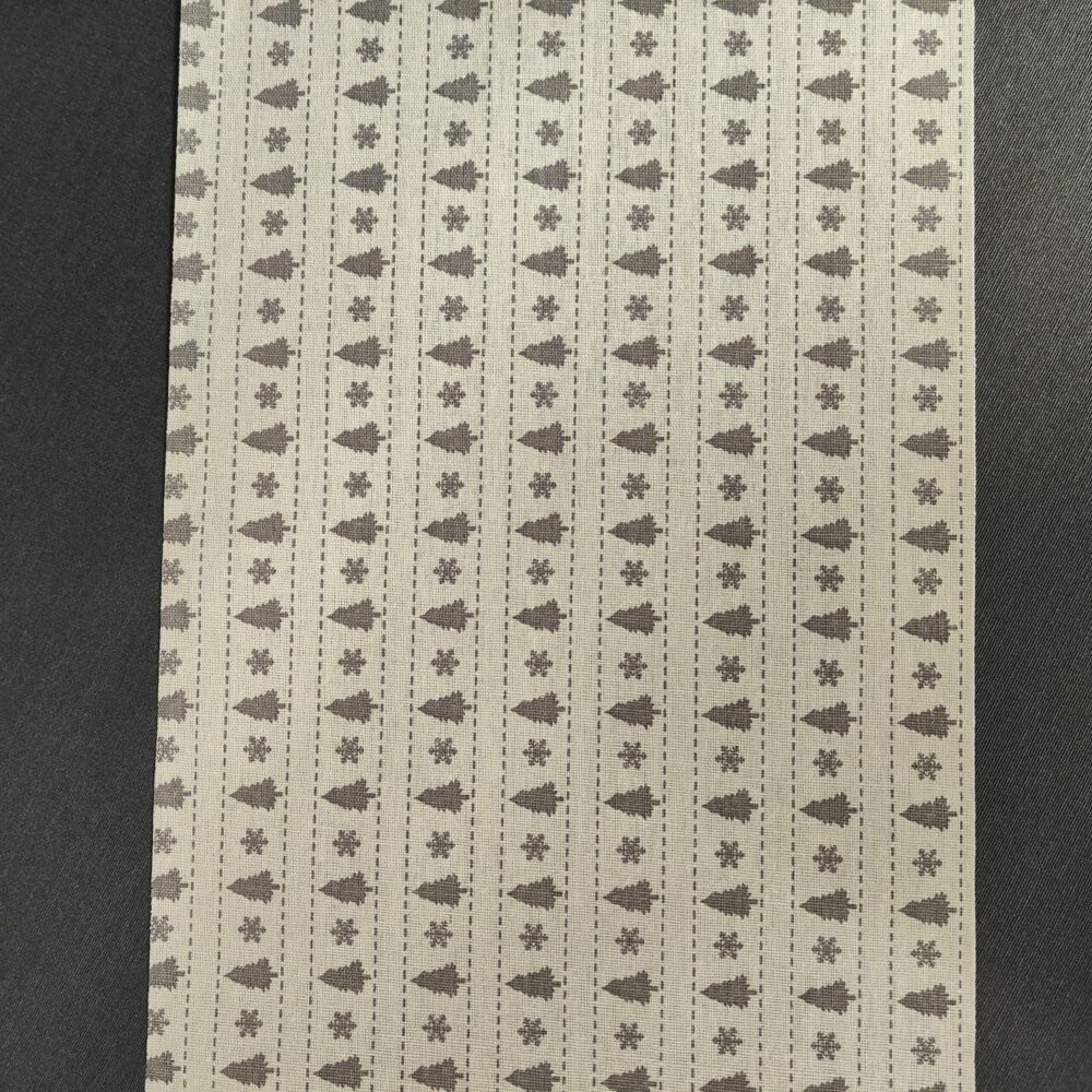 Den smukke løber har et diskret mønster af grå juletræer og snefnug på lys bund – perfekt til et stilrent og hyggeligt julebord. Designet er enkelt og tidløst, så det passer flot sammen med både voksduge og tekstilduge i matchende nuancer.