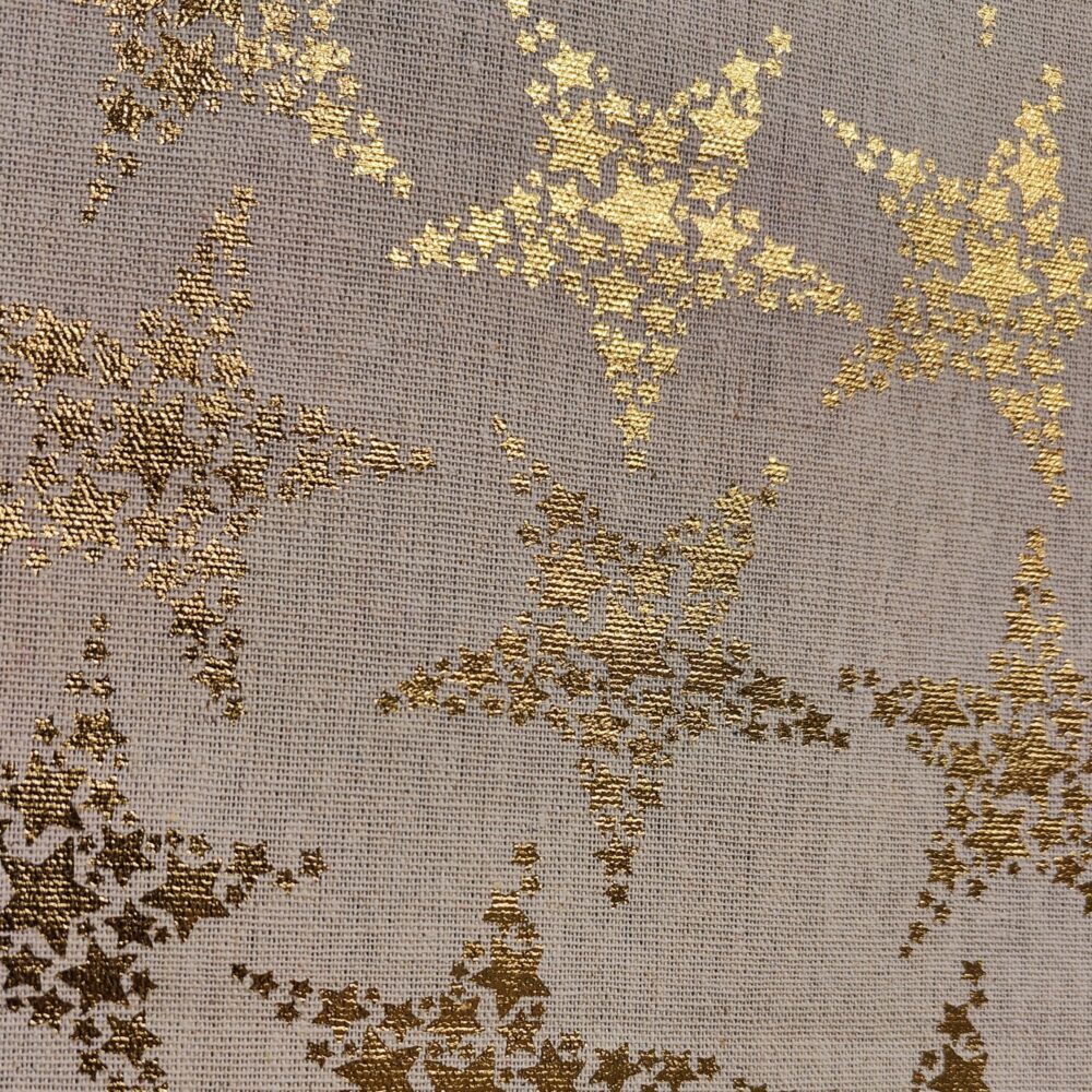Brug løberen ovenpå dine voksduge, tekstilduge eller direkte på bordet for et eksklusivt og harmonisk udtryk. Den enkle naturfarve med skinnende guldstjerner matcher de fleste farver og stilarter.
