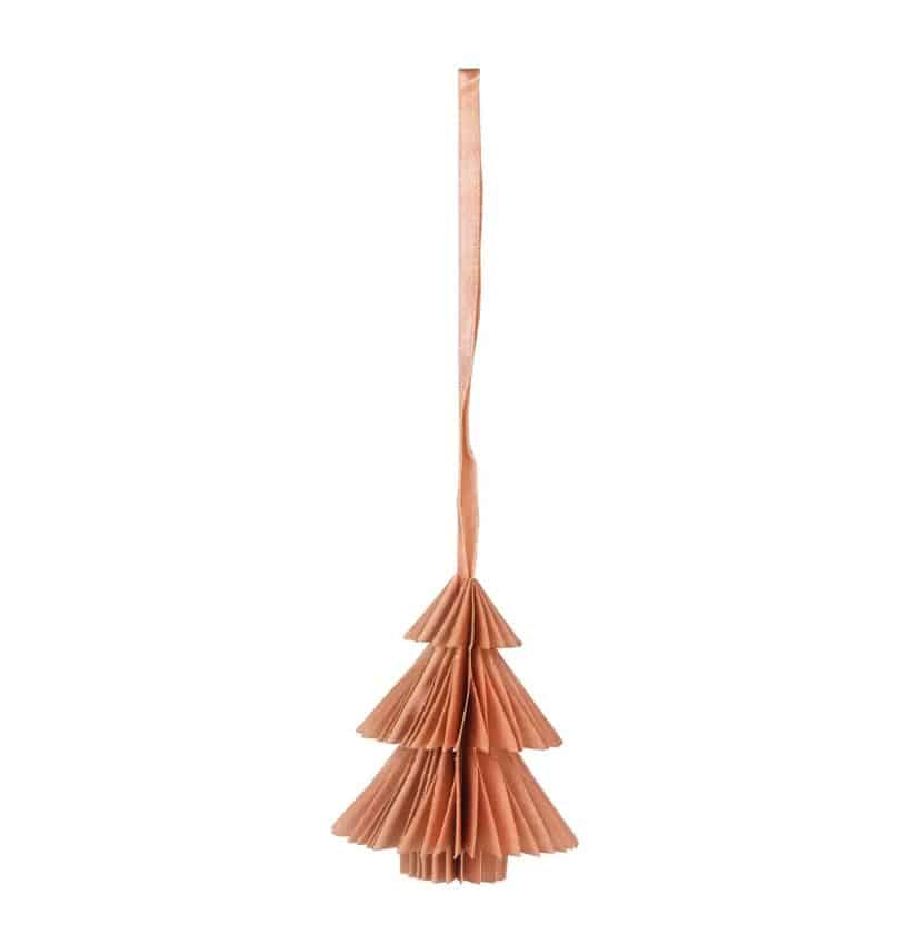 Juletræ i papir til juletræet med rosa bånd.
