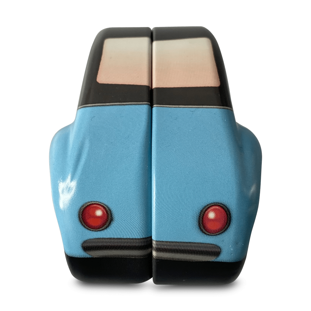 Turkis mini VW boble med blomster er en lille dåse til slik, chokolade, nipsting, gavekort, eller en lille fin gave.