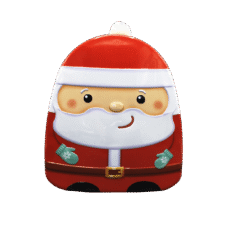 Sød lille buttet julemand kagedåse, med kvast på huen.