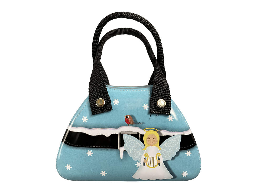 Sød lille engle taske kagedåse til lidt lækkert når man skal på arbejde, til pakkekalender, eller en lille værtsgave.