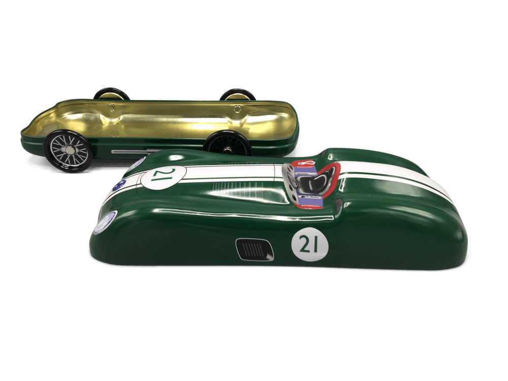 Retro racerbil kagedåse i grøn, med nummer 21.