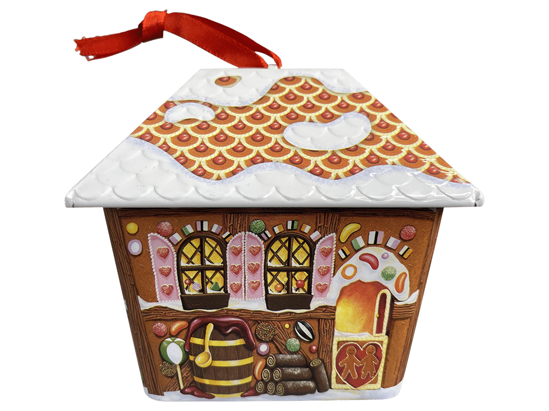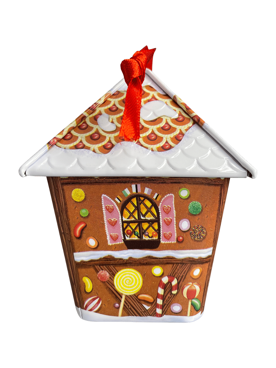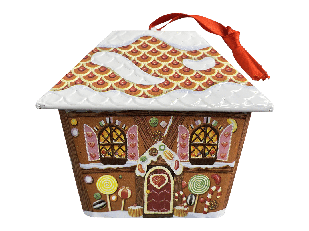 Sjov lille kagedåse hus til chokolade eller slik, til at hænge på juletræet.