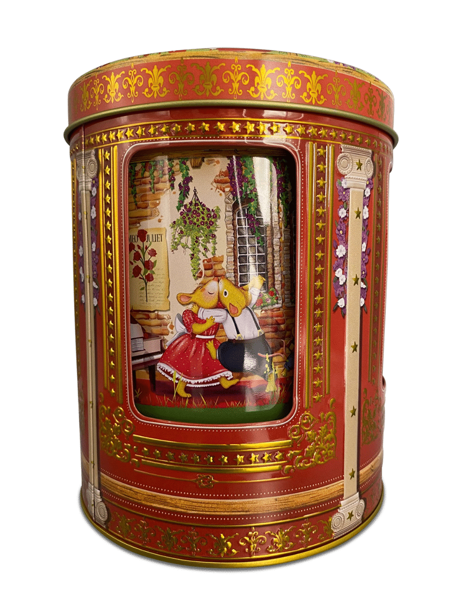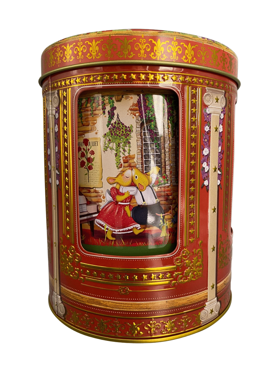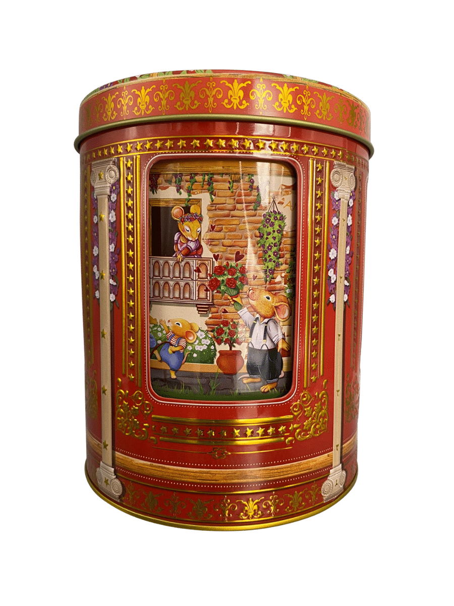 Når du trækker dåsen op i bunden, spiller den den klassiske melodi “Für Elise”, mens motiverne bringer liv og julehygge ind i stuen. Perfekt til opbevaring af småkager, te, konfekt eller blot som et dekorativt samlerobjekt, der skaber stemning hele december.