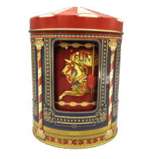 Mens hestene snurrer i cirkler, spiller den den stemningsfulde melodi “Nocturne”, som fylder rummet med ro og varme – perfekt til decemberaftener. Dåsen er ideel til opbevaring af småkager, konfekt eller som en unik julegave, der kan bruges år efter år.