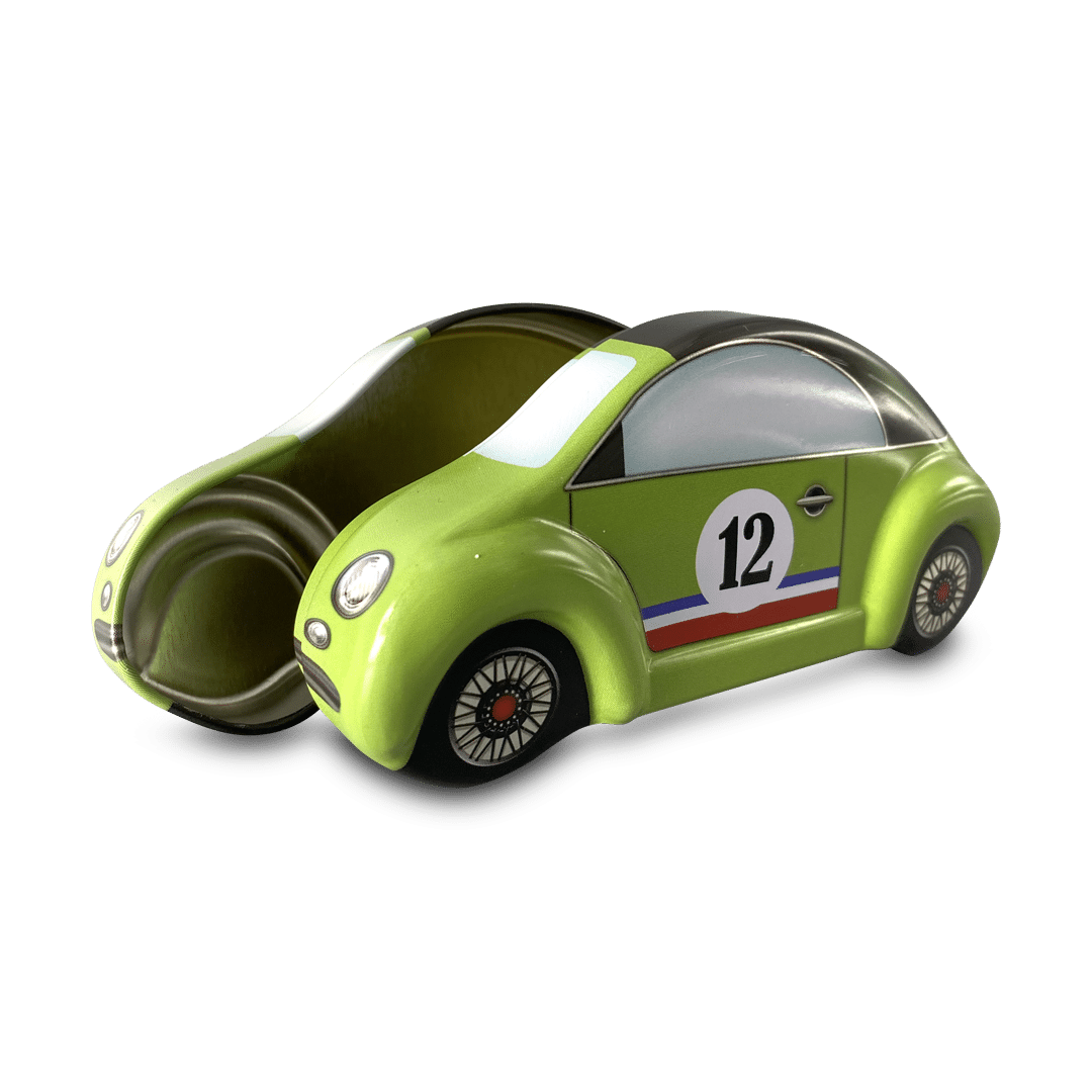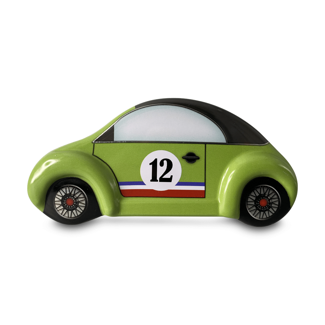 Grøn mini Boble bil nr. 12 er en lille dåse til slik, chokolade, nipsting, gavekort, eller en lille fin gave.