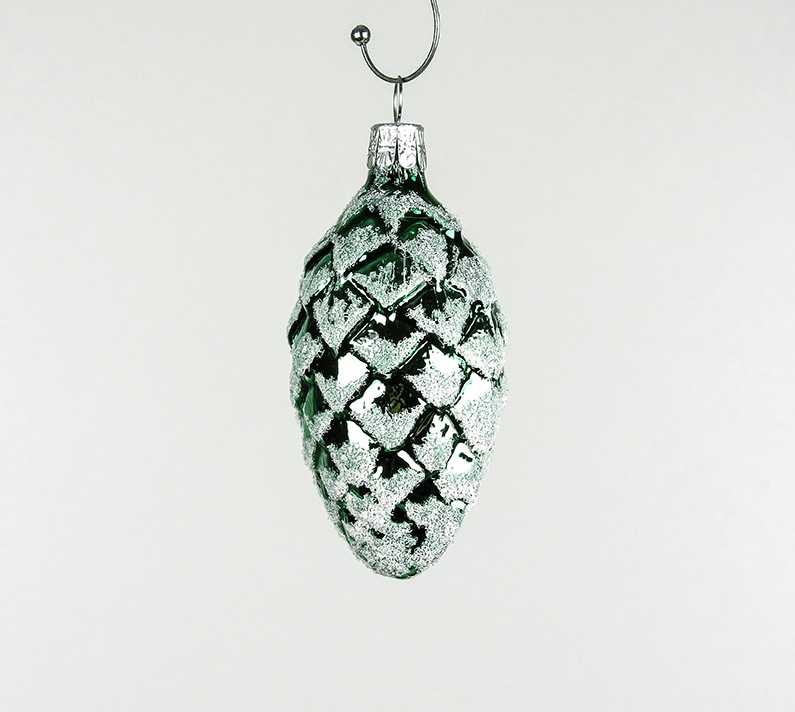 Kogler grøn juletræs kugler med sne på 7 cm