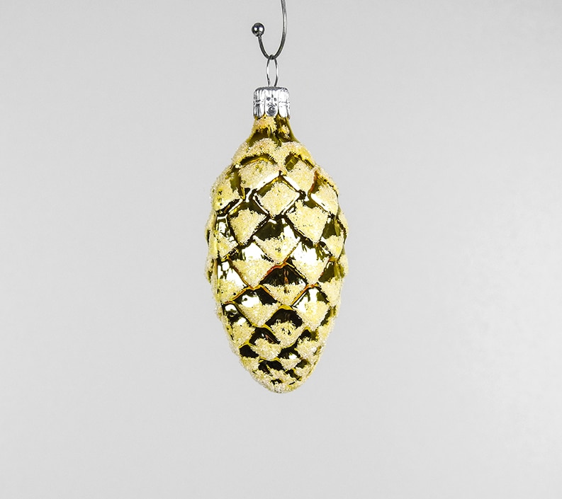 Kogler gule juletræs kugler med sne på 7 cm