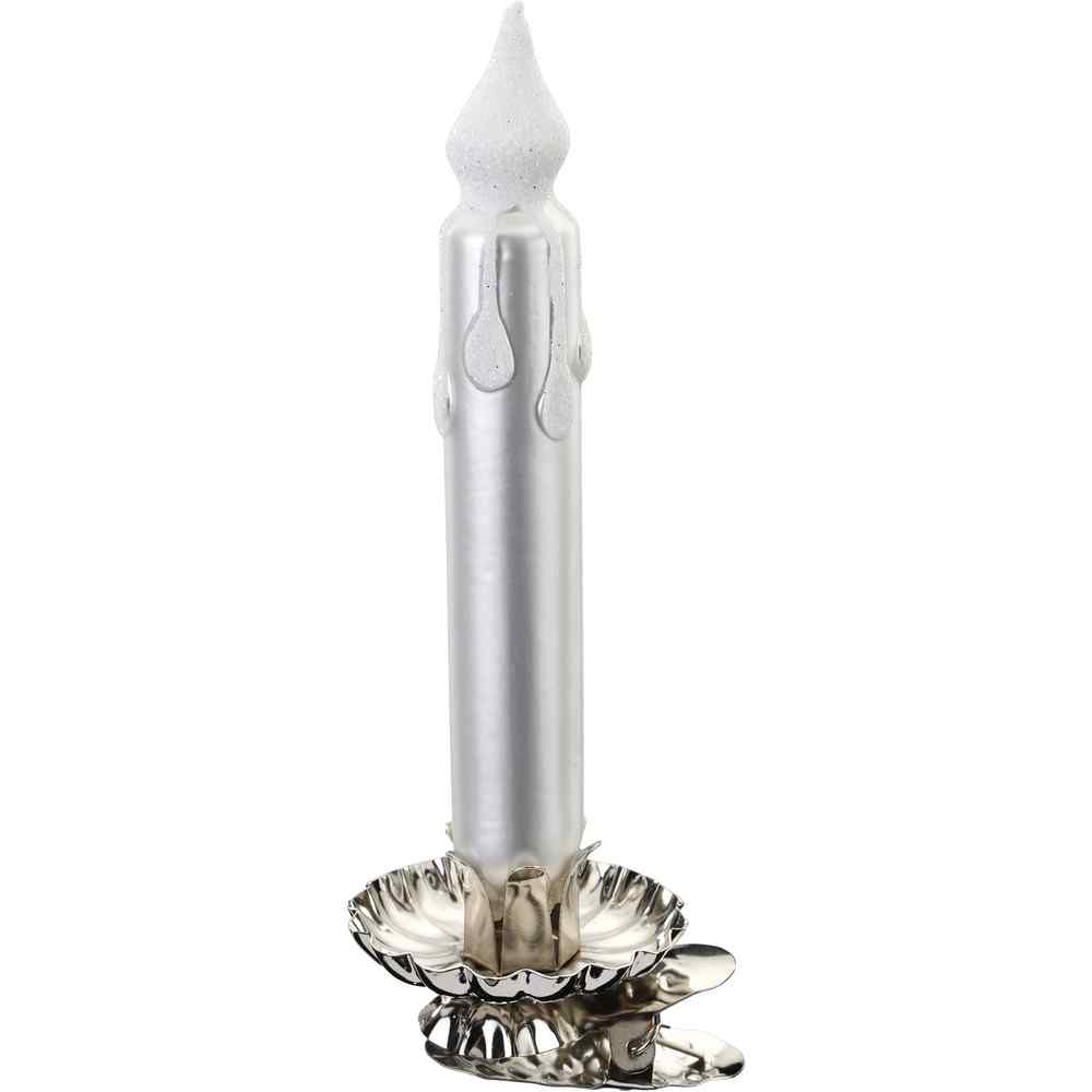 Flot juletræslys med clips mundblæst juletræskugle i farven sølv og hvid.