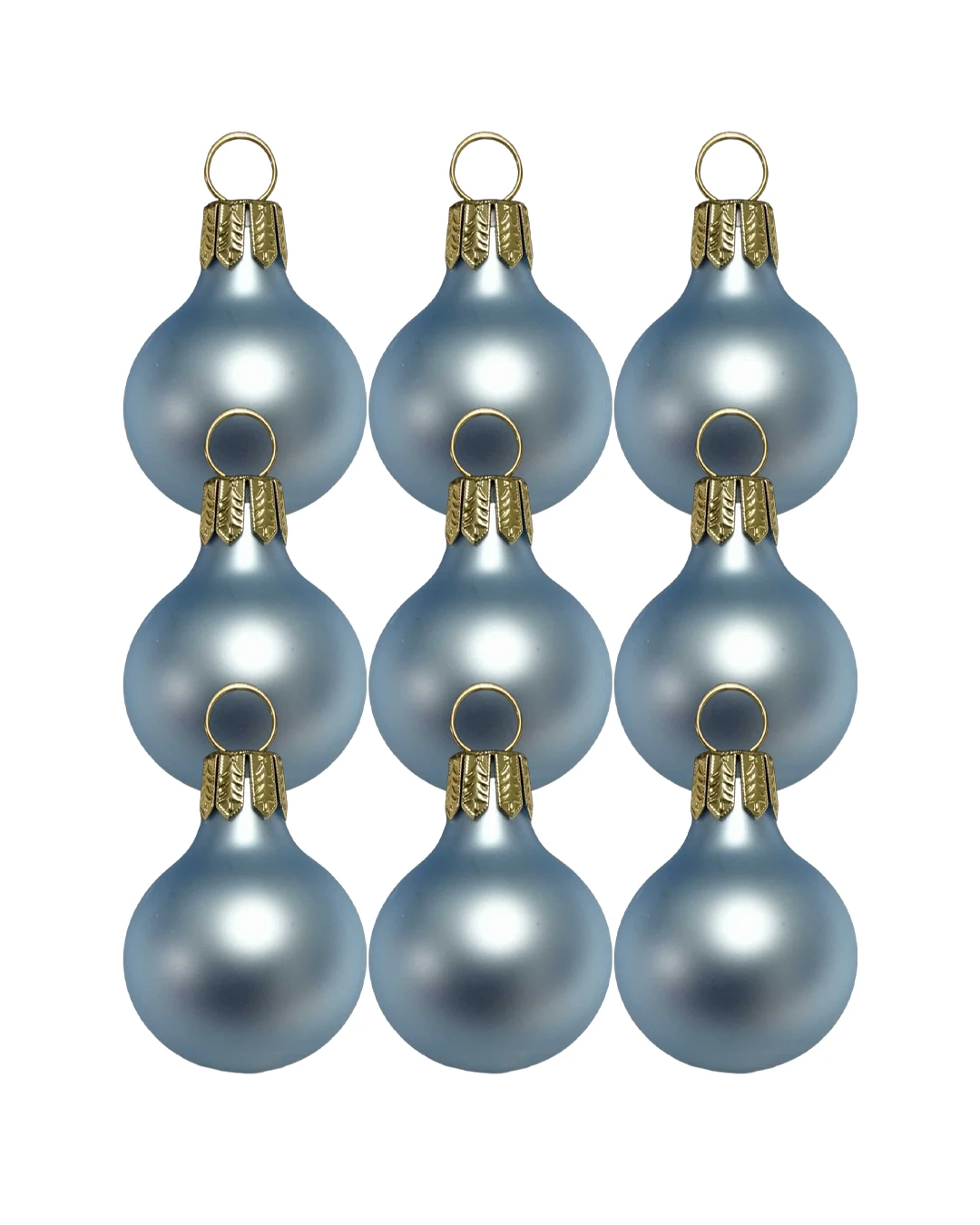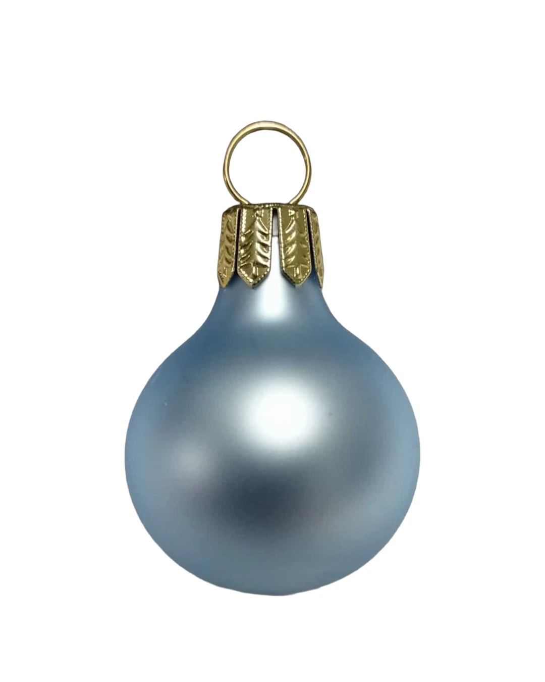 Lyseblå silkemat juletræskugler Ø 3 cm, er flot udført i mundblæst glas.