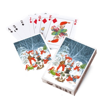 Spillekort med slag i, med motiver fra Nissernes jul, tegnet af Clara og Vilhem Hansen.