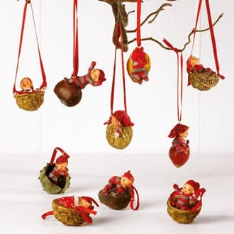 Susanne Hartmanns skønne nissetumlinger i og på nødder til divs ophæng i vinduer – juletræ.