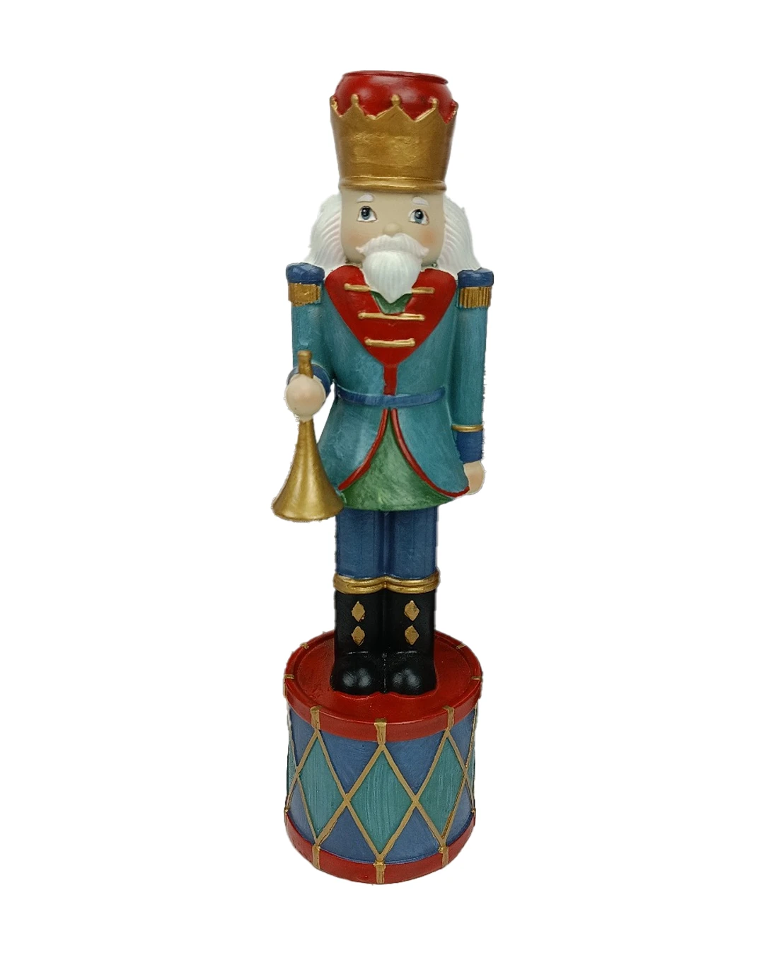 Stor nøddeknækker lysestage, hvor nøddeknækkerene står en flot dekoreret tromme.