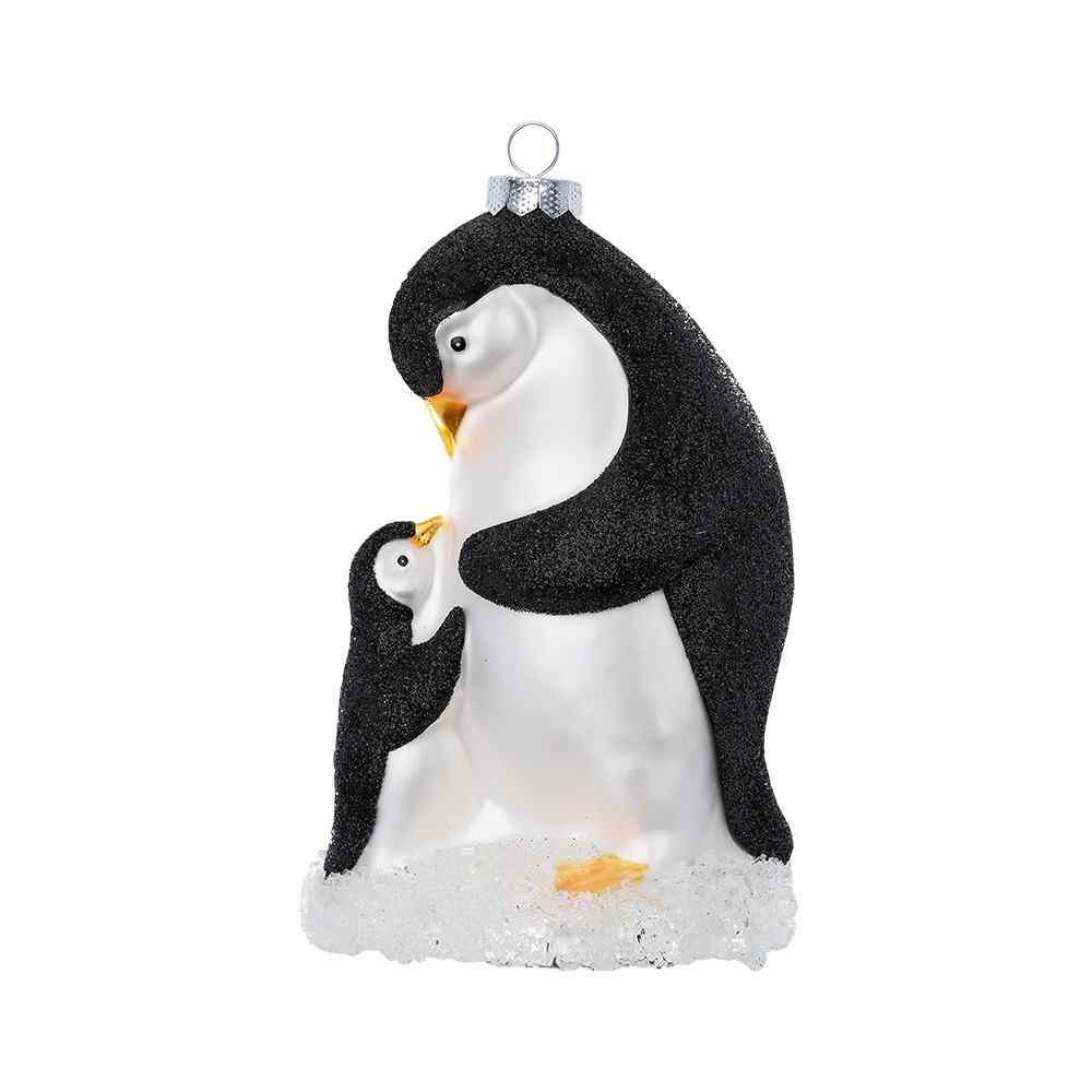 Juletræskugle med pingviner, der oser af moder kærlighed.