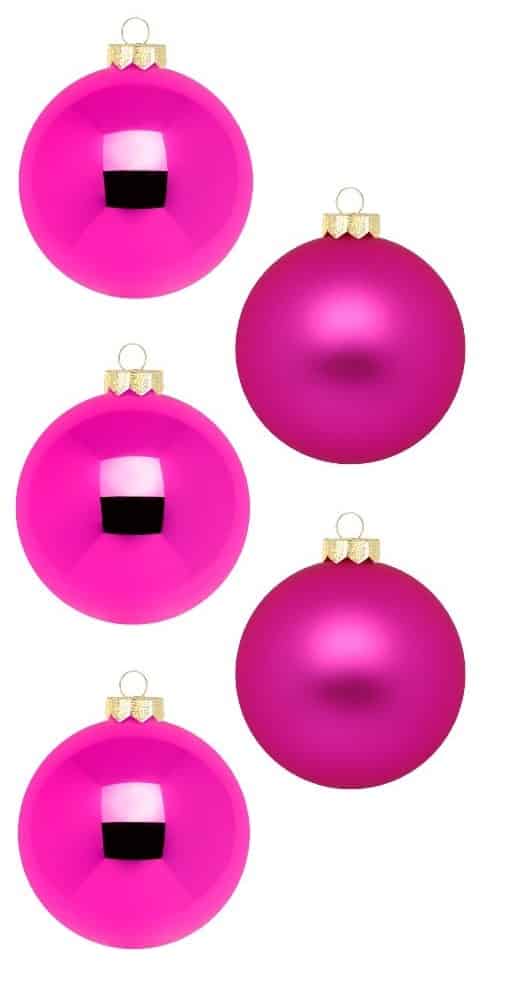 Flotte små silkematte og blanke pink glas juletræskugler i Ø 2,5 cm juletræet, kranse, dekorationer mm.