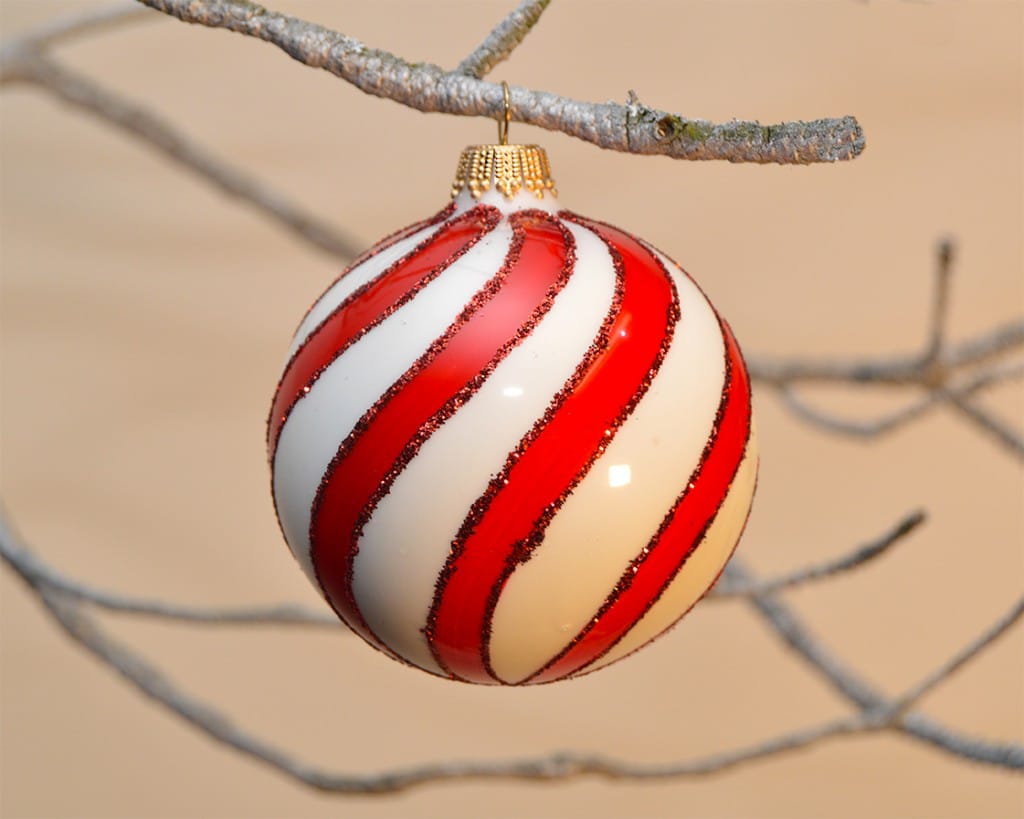 Porcelæns bolsje farvede juletræskugler. Porcelæns bolsje farvede juletræskugler, i mundblæst glas. Indersiden af julekuglen er ægte forsølvet, kuglen får derved et mere intensiv udtryk, når lyset rammer den.