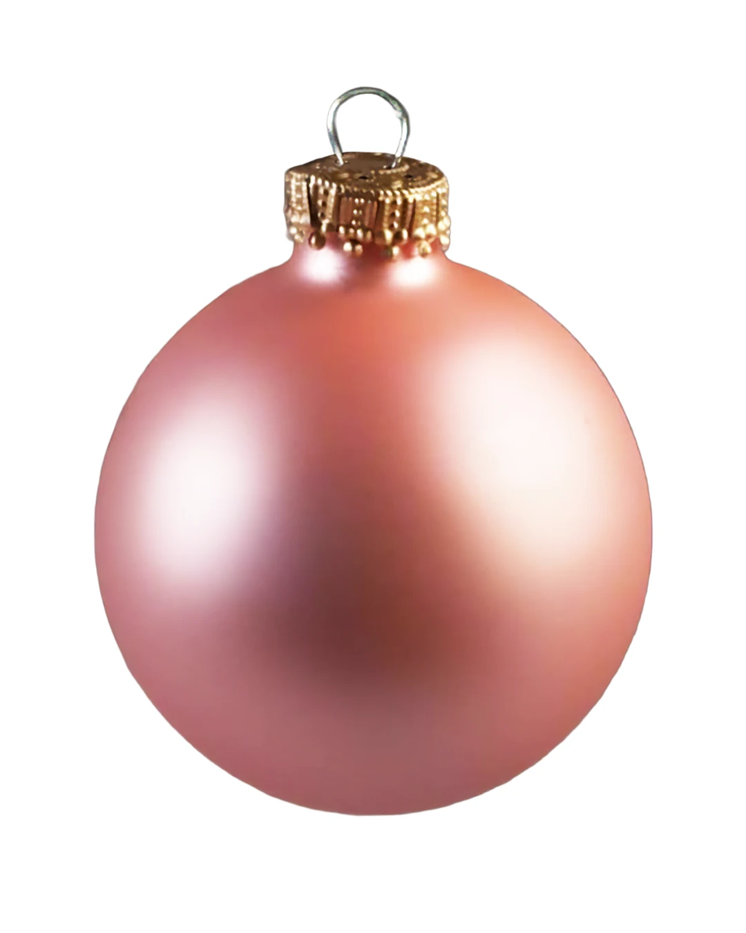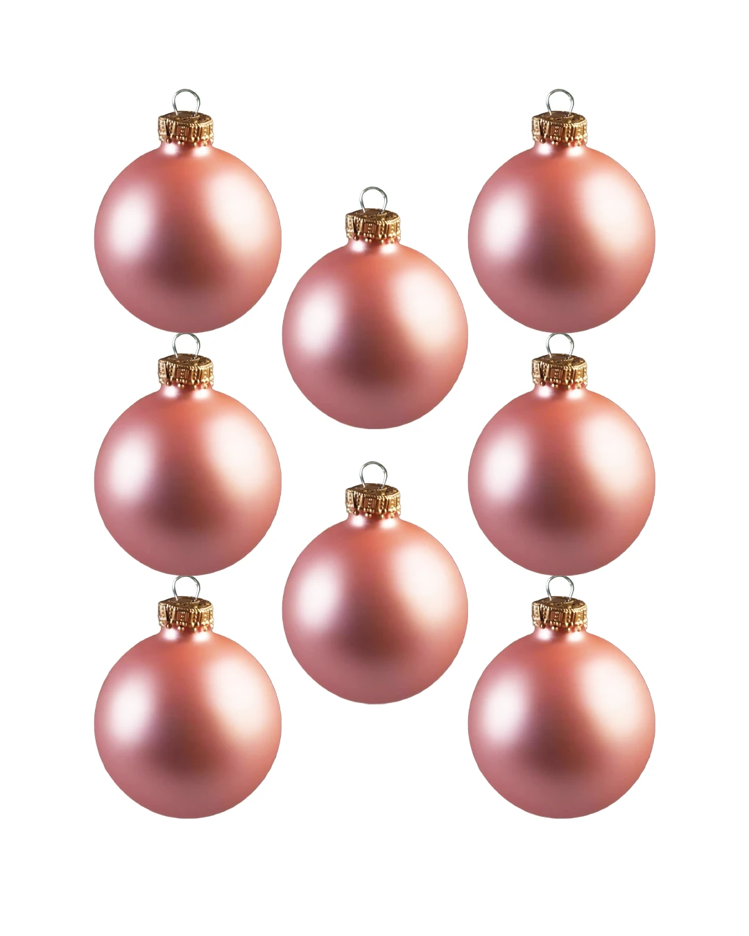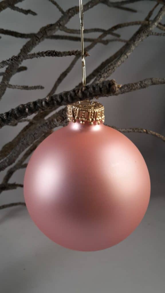 Silkematte puder rosa glas juletræskugler, der matcher hele serien med silkemat overflade.