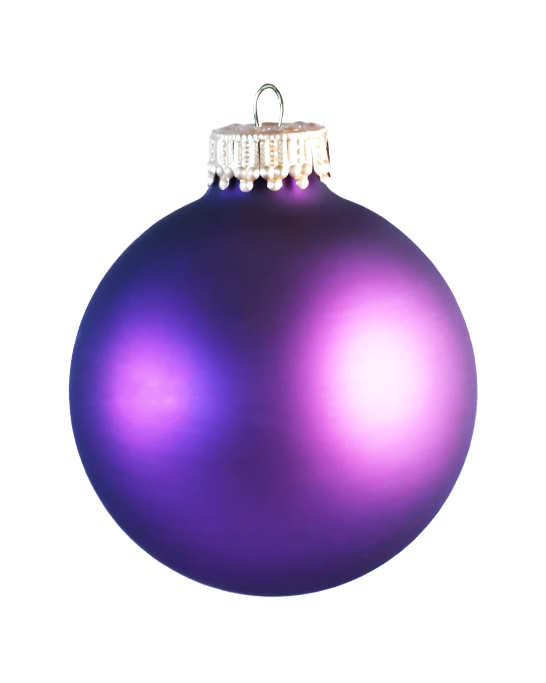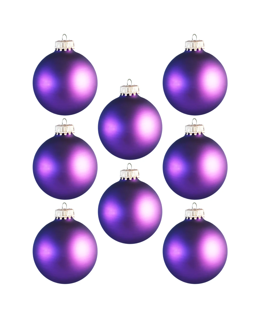 Smukke silkematte purpur glas juletræskugler, der matcher hele serien med silkemat overflade.