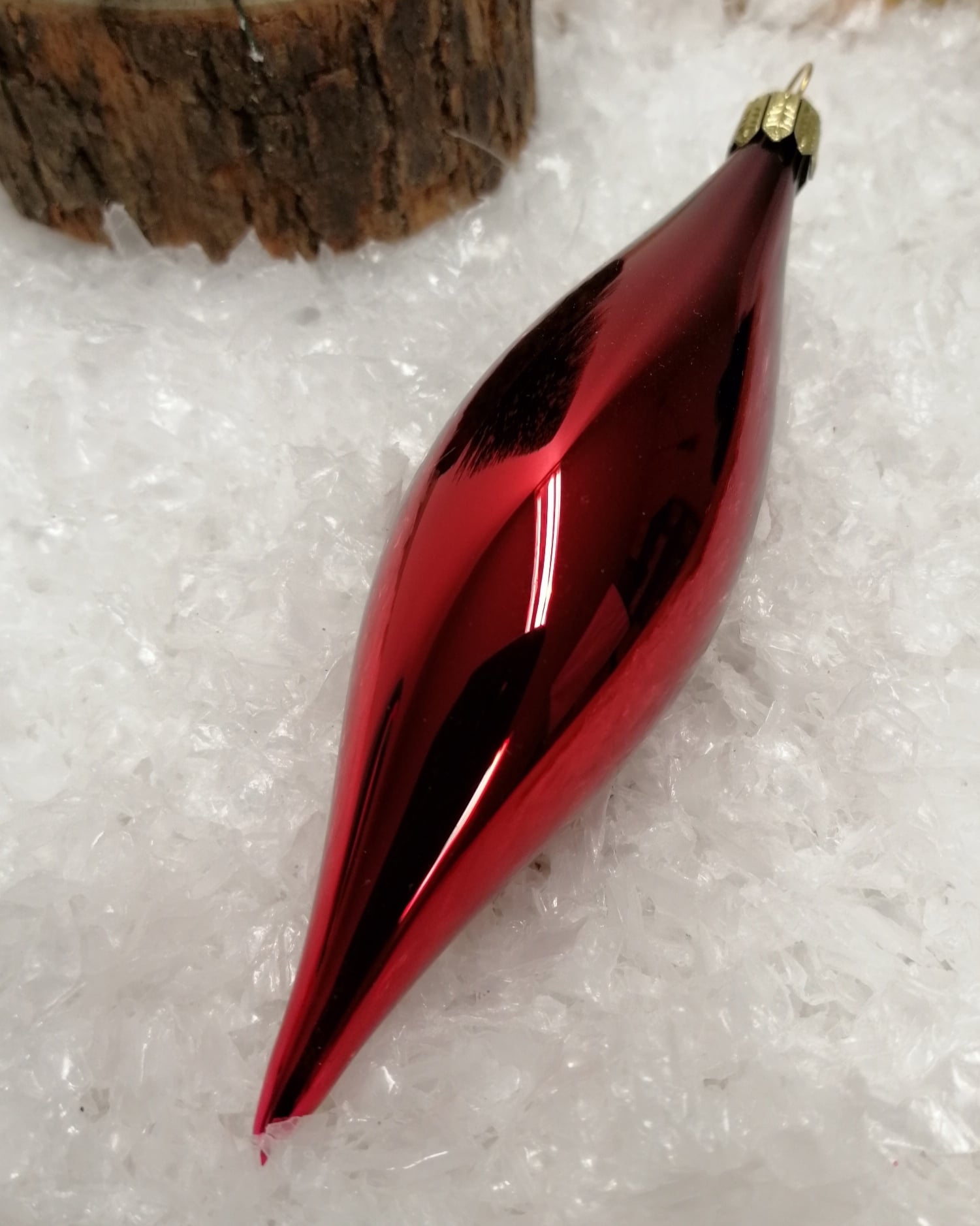 Rød blank dråbe juletræskugle 12 cm, er flot udført i mundblæst glas. Dråber hænger smukt lodret ned, fra juletræet grene.