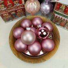 Sart rosa silkematte og blanke juletræskugler Ø 6 cm, er gode med andre farver. Smukke og unikke rosa glas juletræs kugler, i silkematte og blanke.