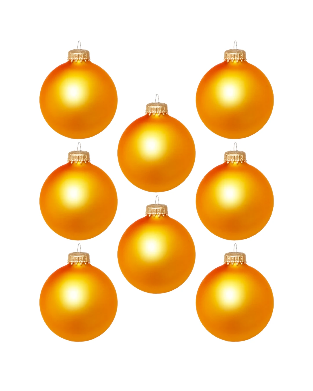 Smukke silkematte glas juletræskugler i en flot gul guld farve, der matcher hele serien med silkemat overflade.
