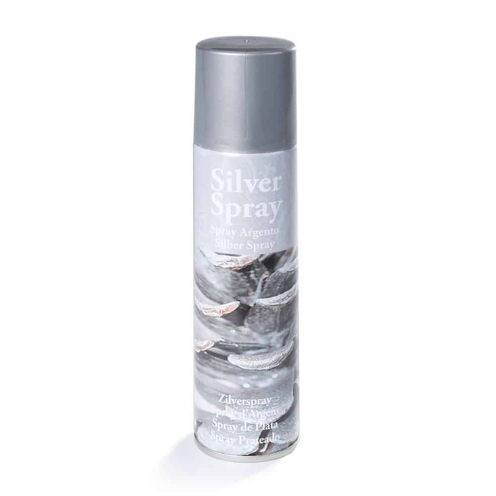 Sølv spray til dekorationsbrug.
