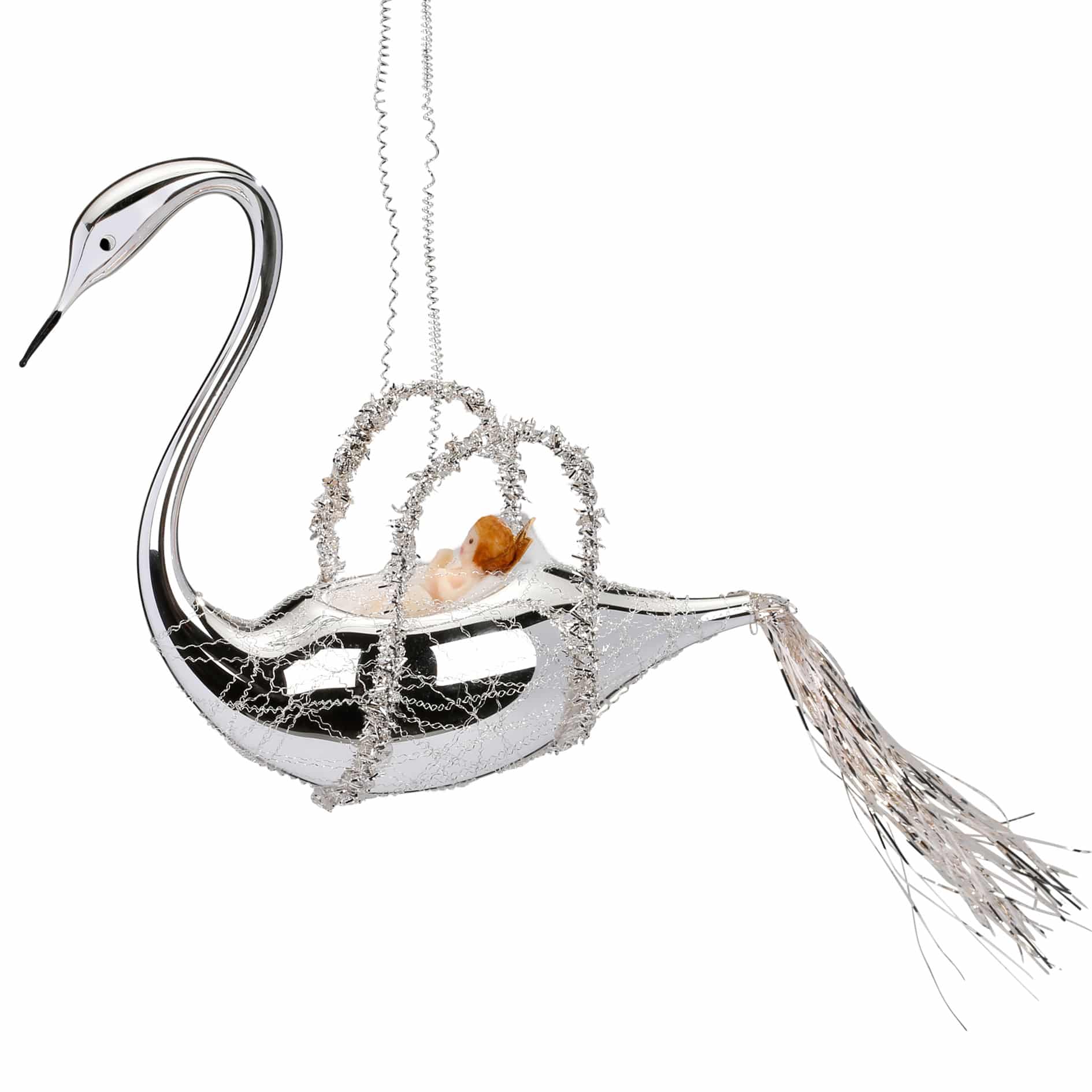 Sølv svane med Jesus barn vintage glas juletræskugle 13 cm