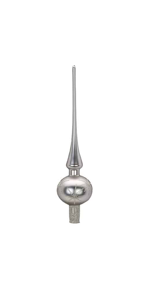 Sølvgrå silkemat med sølv stjerneglimmer, med 1 kugle og spids .