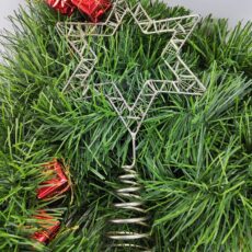 Topstjerne sølv metal 28 cm. Topstjerne i rustfri stål, sølvfarvet. Topstjernen er udformet som dobbelt stjerne, smukt viklet med sølv snor.