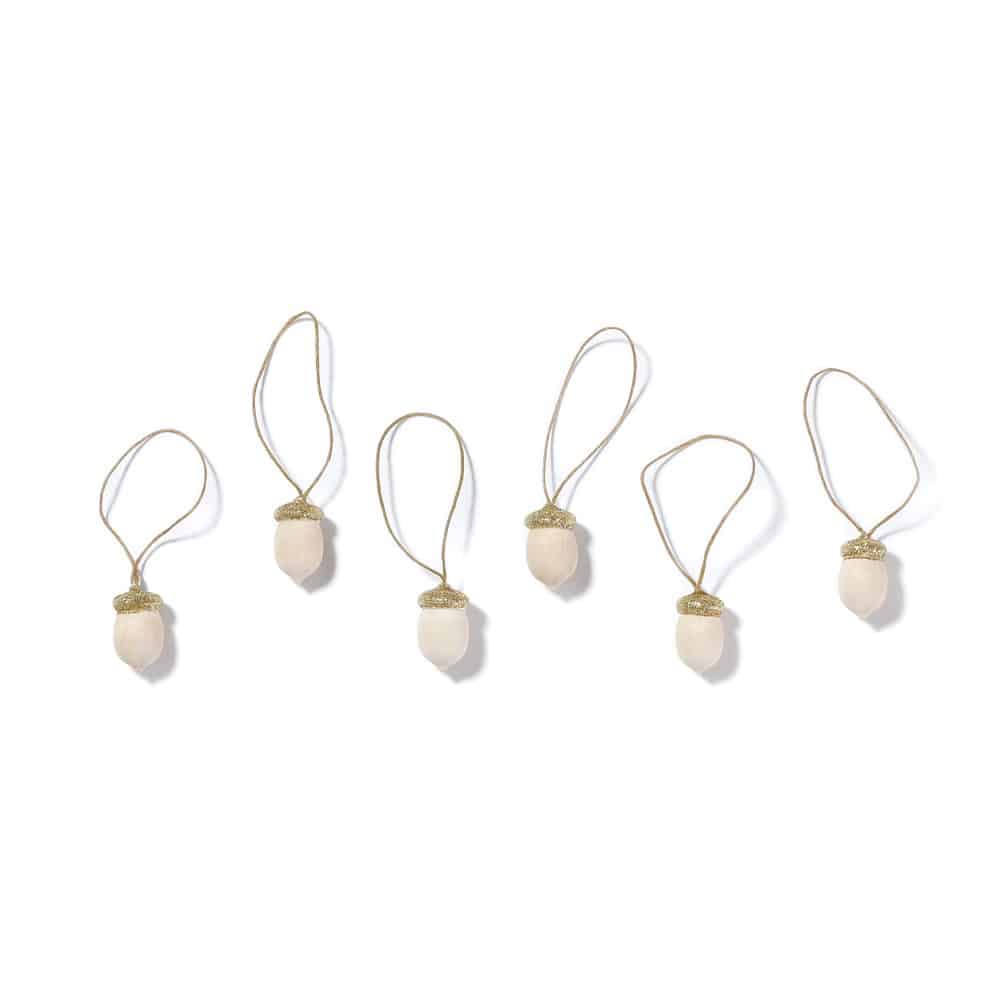 Flotte lyse træ agern med forgyldt glimmer top med snor.